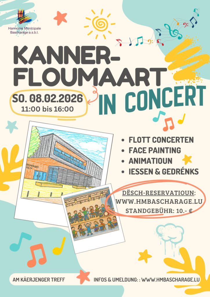 De ganzen Dag ass fir Animatioun (z.B. Facepainting) gesuergt. Des weidere bidde verschidde Kannerensemblen (Orchester & Chorale) nierft engem flotten Aperitif-Concert, och weider kleng Concerten iwwert den Nomëtte verdeelt un.
